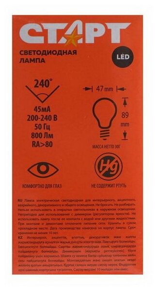 Световой поток: 800 Лм
