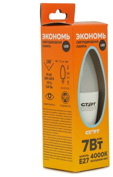 Модель: Старт ECO LEDCandleE27 7W 40