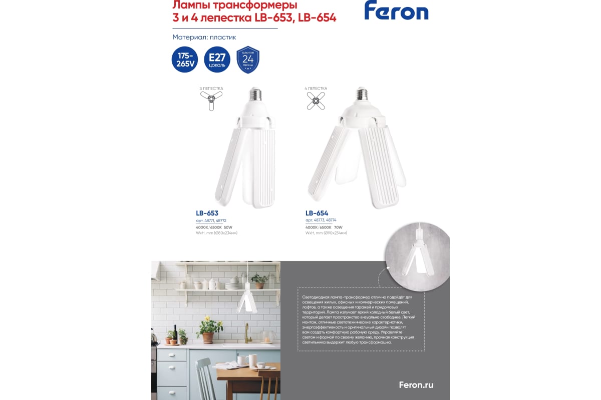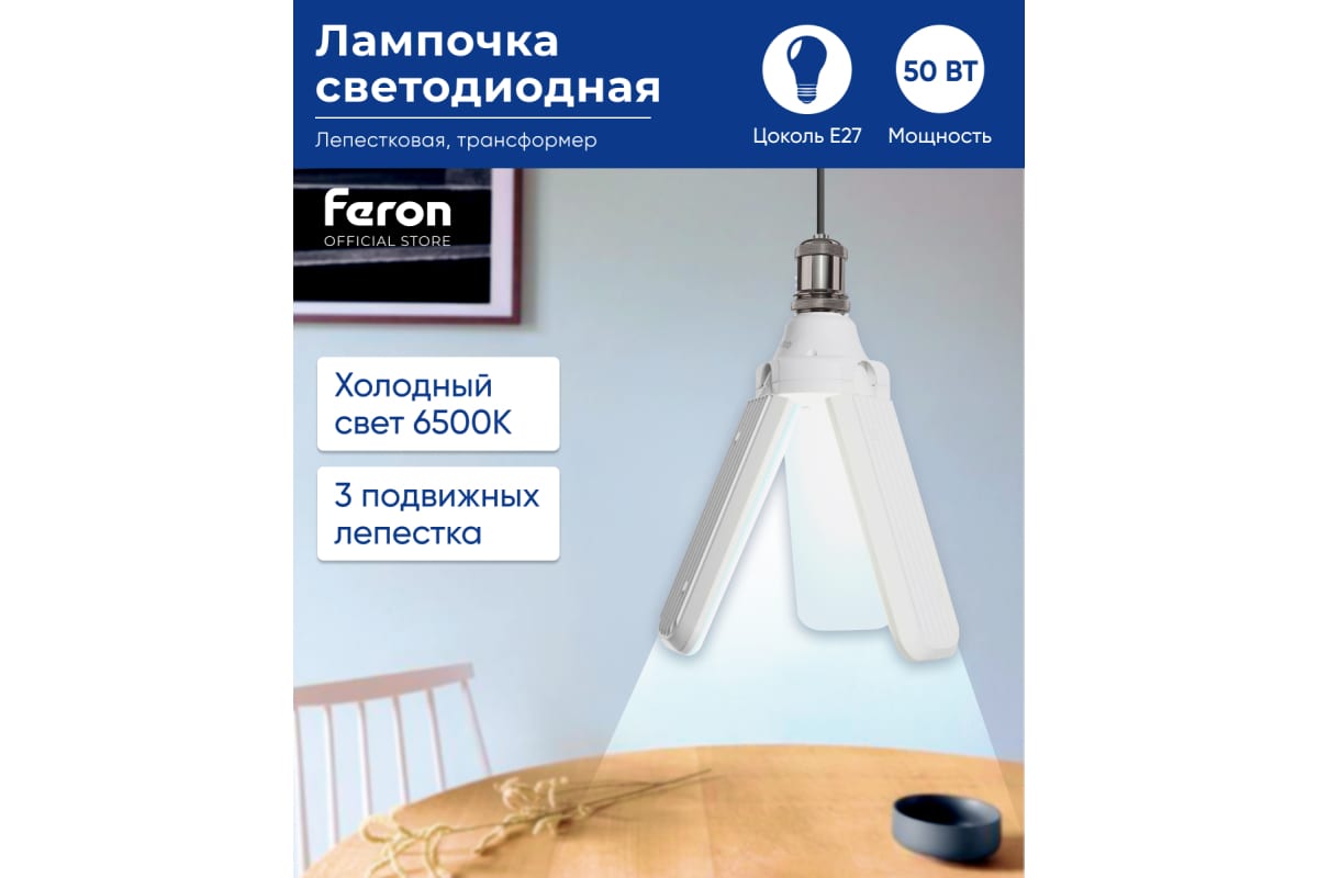 Технические характеристики FERON lb-653 3 лепестка e27 50w 6500к 48772