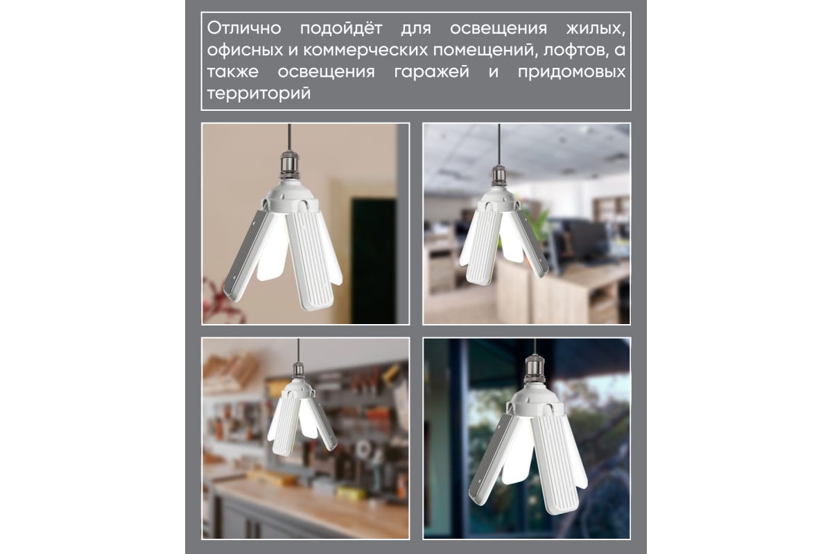 Светодиодная лампа-трансформер отлично подойдёт для освещения жилых, офисных и коммерческих помещений, лофтов, а также освещения гаражей и придомовых территорий.
