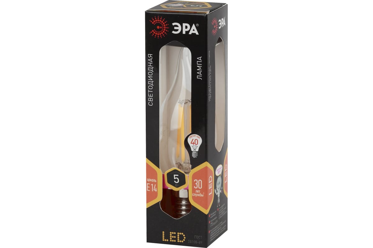 Филаментная лампа ЭРА F-LED BXS-5W-827-E14 филамент, свеча на ветру, 5Вт, E14 Б0043436 с нитевидными светодиодами серии F-LED. Лампа премиального сегмента. Максимально похожа на лампу накаливания, может использоваться в дизайнерских интерьерах. Угол рассеивания светового потока 360 градусов.