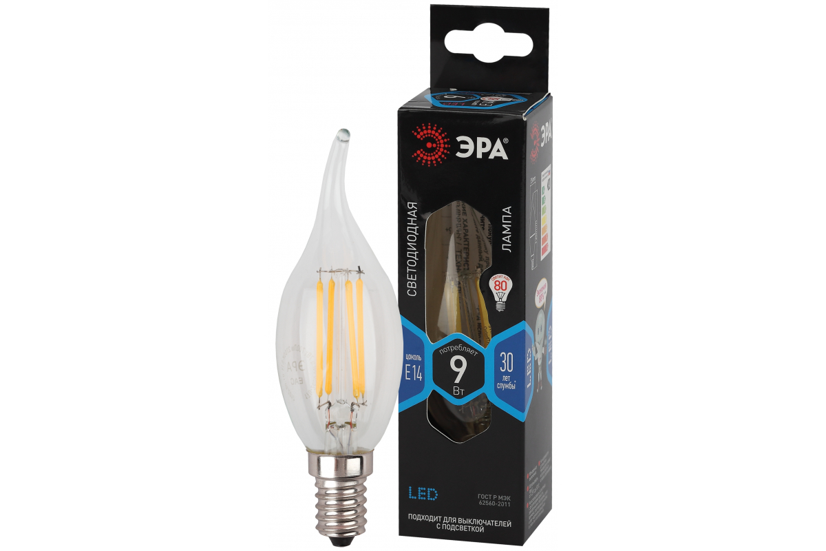 Филаментная лампа ЭРА FLED BXS9W840E14 свеча на ветру, 9 Вт, нейтральная, E14, 10/100/4000 Б0047005 - лампа премиального сегмента. Максимально похожа на лампу накаливания, может использоваться в дизайнерских интерьерах. Угол рассеивания светового потока: 360 градусов. Совместима с выключателями с подсветкой.
