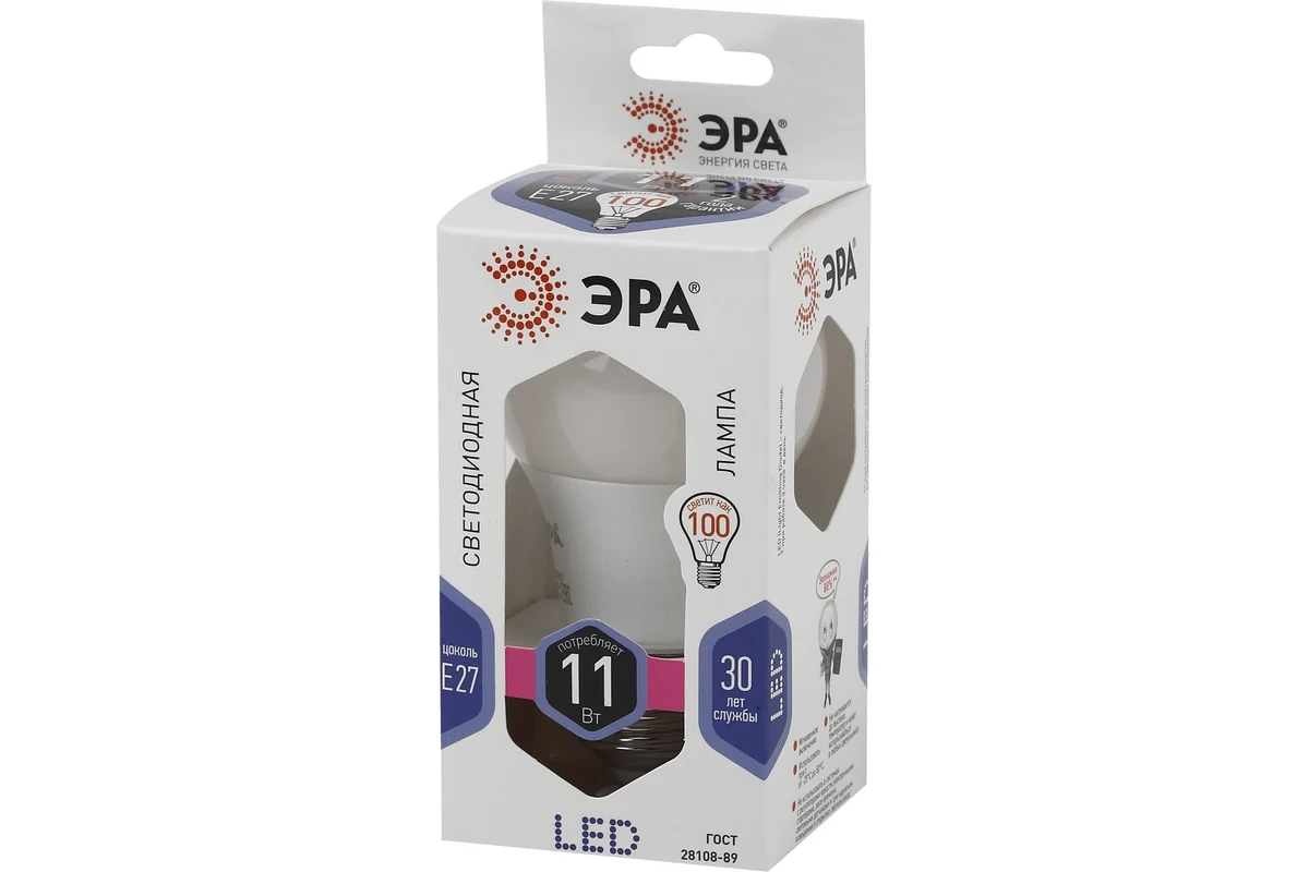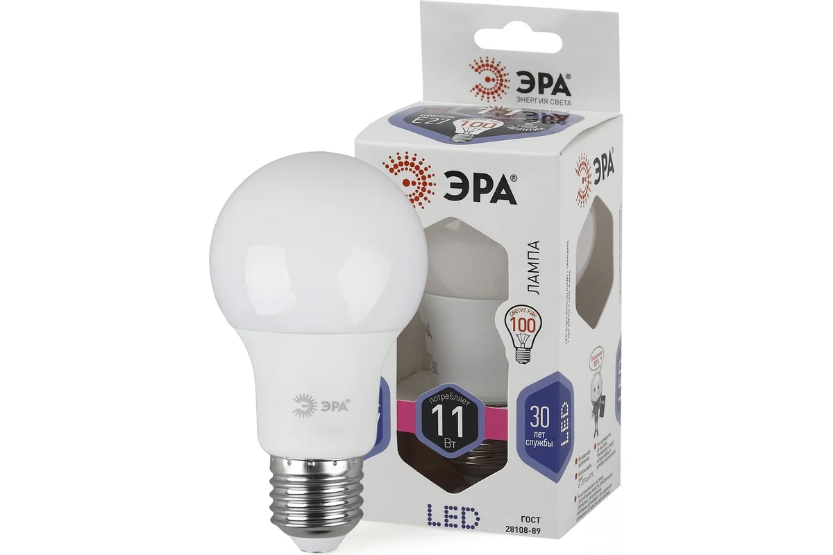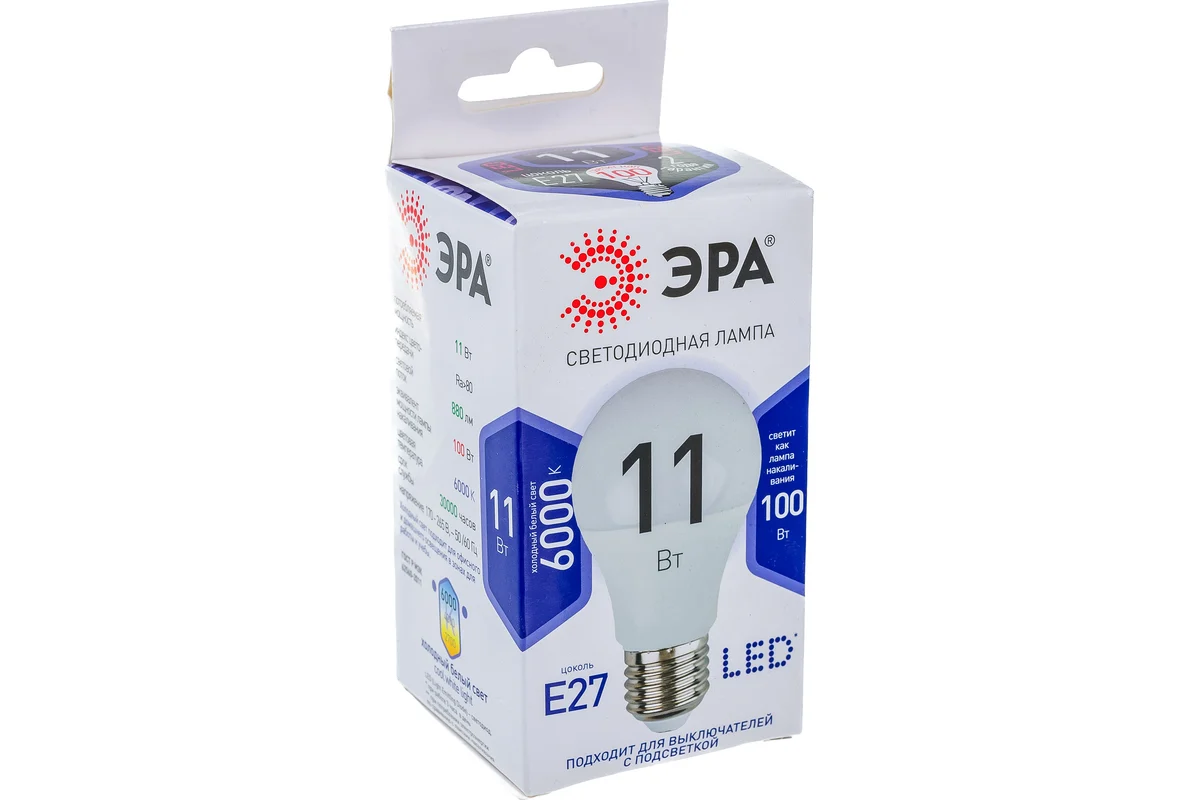 Светодиодная лампа ЭРА LED A60-11W-860-E27, груша, холодный Б0031394 подходит для установки в люстры и все типы бытовых светильников - потолочные, настольные, бра. Бережёт электроэнергию, ярко светит, имеет долгий срок службы. Цветовая температура - холодный белый свет. Такое освещение бодрит, повышает работоспособность. Этот современный источник света создаёт комфортное и безопасное для глаз освещение.