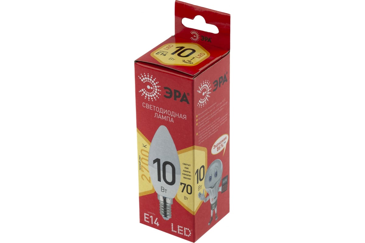 Технические характеристики ЭРА LED B35 10W 827 E14 R диод, свеча, 10Вт, теплый свет, E14 Б0049641