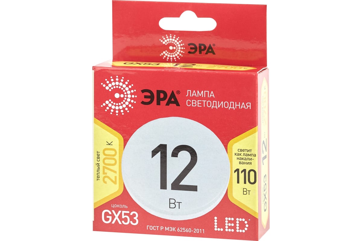 Технические характеристики ЭРА LED GX-12W-827-GX53 R диод, таблетка, 12Вт, теплый свет, GX53 Б0048012