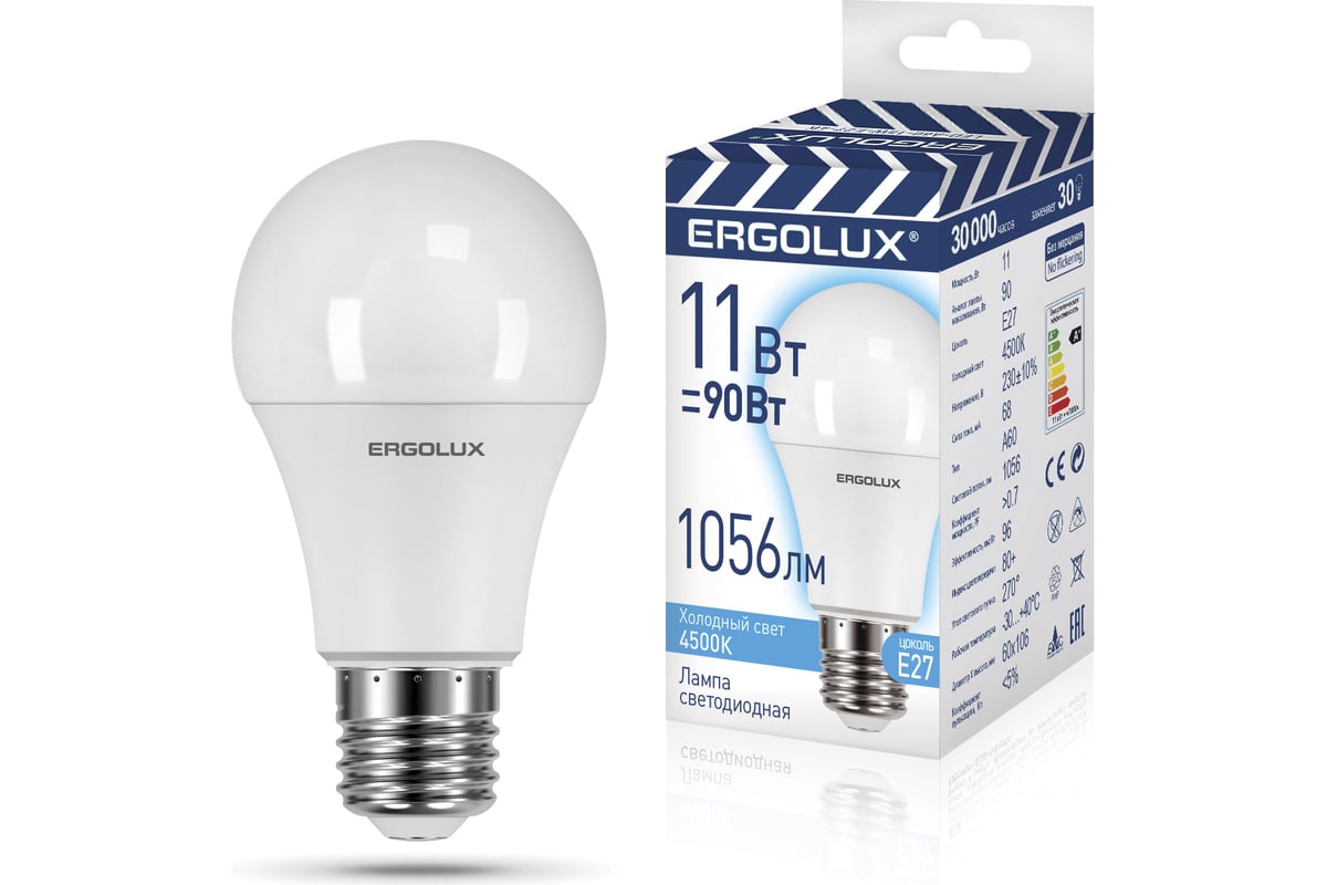 Технические характеристики Ergolux ЛОН LED-A60-11W-E27-4K 11Вт Е27 4500К 220-240В, ПРОМО 14459