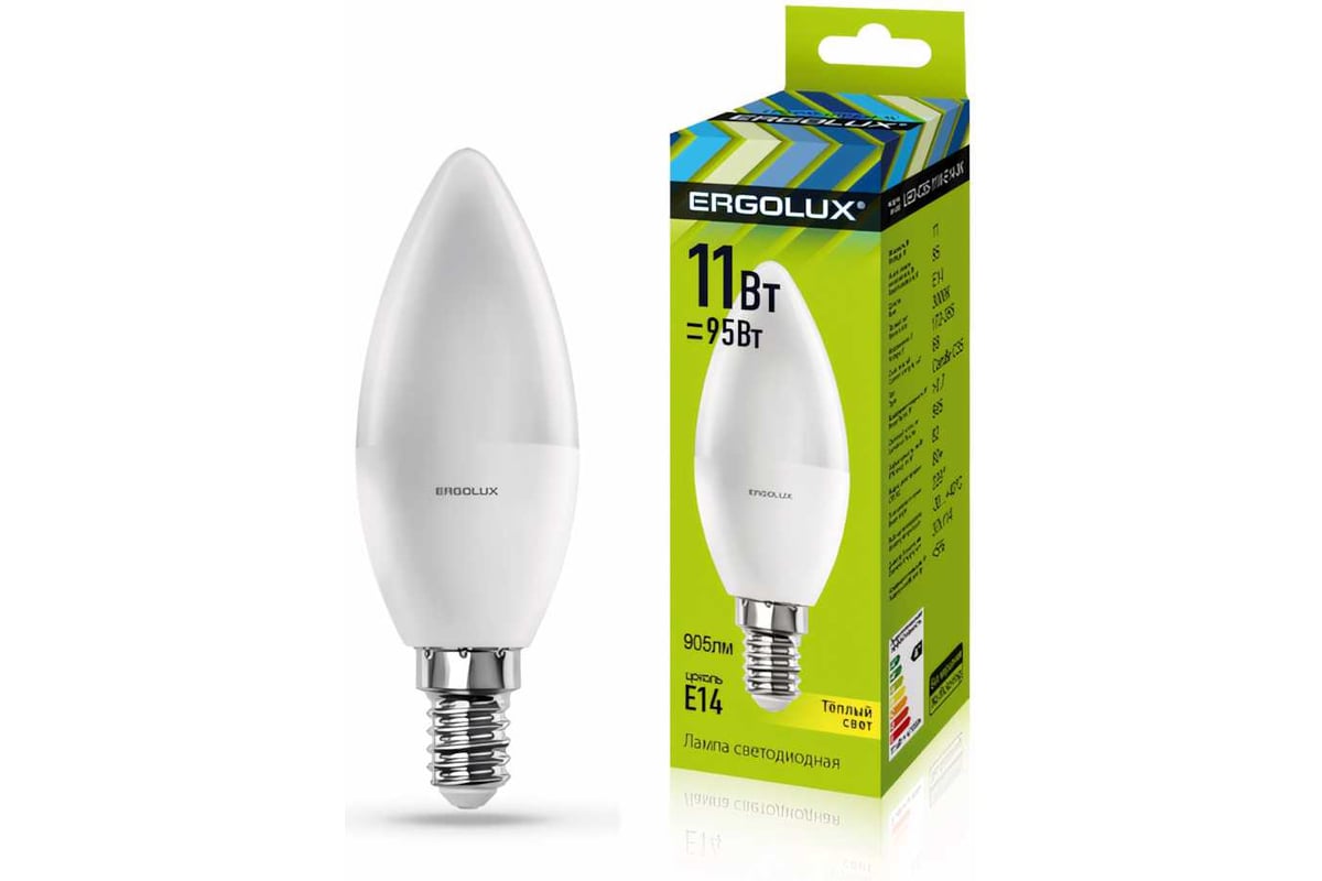Технические характеристики Ergolux LED-C35-11W-E14-3K Свеча 11Вт E14 3000K 13618