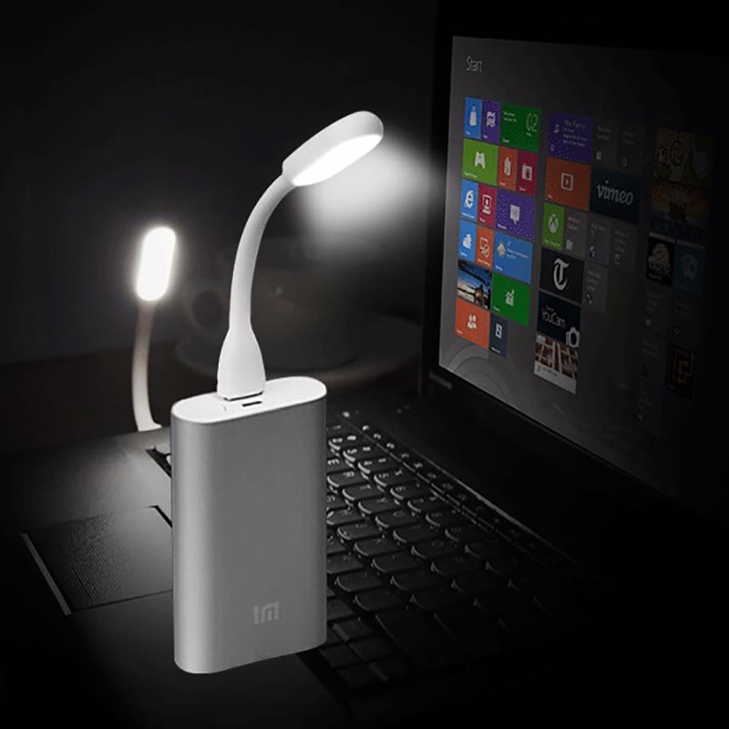 Как от портативного аккумулятора, так и от ноутбука сможет работать миниатюрная светодиодная лампочка Xiaomi Portable USB LED Light. Пластиковая ножка изготовлена из гибкого мягкого пластика, который похож по ощущениям на силикон. Эта ножка может легко гнуться, а после этого держит ту форму, которую человек ей предал, что удобно.Свет от этой лампы исходит рассеянный и равномерный, удалось производителю этого добиться благодаря специальной матовой вставке, которая прикрывает светодиод. Свет данного гаджета в ночное время легко сможет освещать все клавиши ноутбука или компьютера, позволяя человеку работать и ночью.Соединяется с устройствами обеспечивающими энергию эта лампа с помощью USB разъёма. Она вполне может выступать в качестве отличного ночника, который будет давать мягкий и приятный свет.