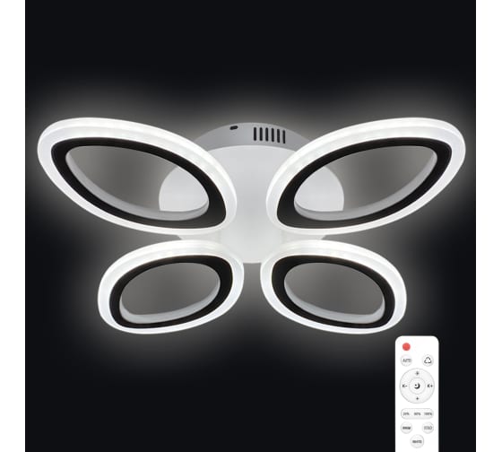 Люстра представлена в белом цвете, имеет форму четырех лепестков, прикрепленных на металлическое основание. Главным отличием светодиодной люстры MONZA является возможность настройки яркости освещения от 20% до 100%. Интенсивность освещения можно регулировать, исходя из обстановки и времени суток — использовать как ночник, как основной источник света или дополнительный. Регулировка яркости освещения происходит с помощью пульта управления, который имеет простой и понятный функционал.