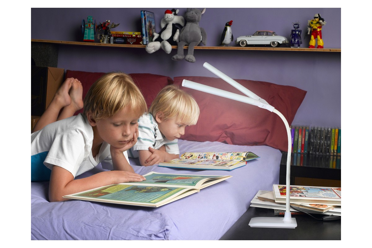 Комплектность: 2 плафона с независимой регулировкой яркости, гибкая стойка в силиконовом кожухе