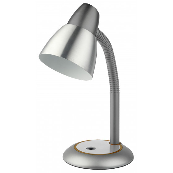 ЭРА N-115 - настольный светильник под лампу накаливания или КЛЛ с цоколем Е27. Устойчивое металлическое основание. Металлический плафон большого диаметра для комфортного рассеивания света. Наклон и пофорот плафона в любом направлении.