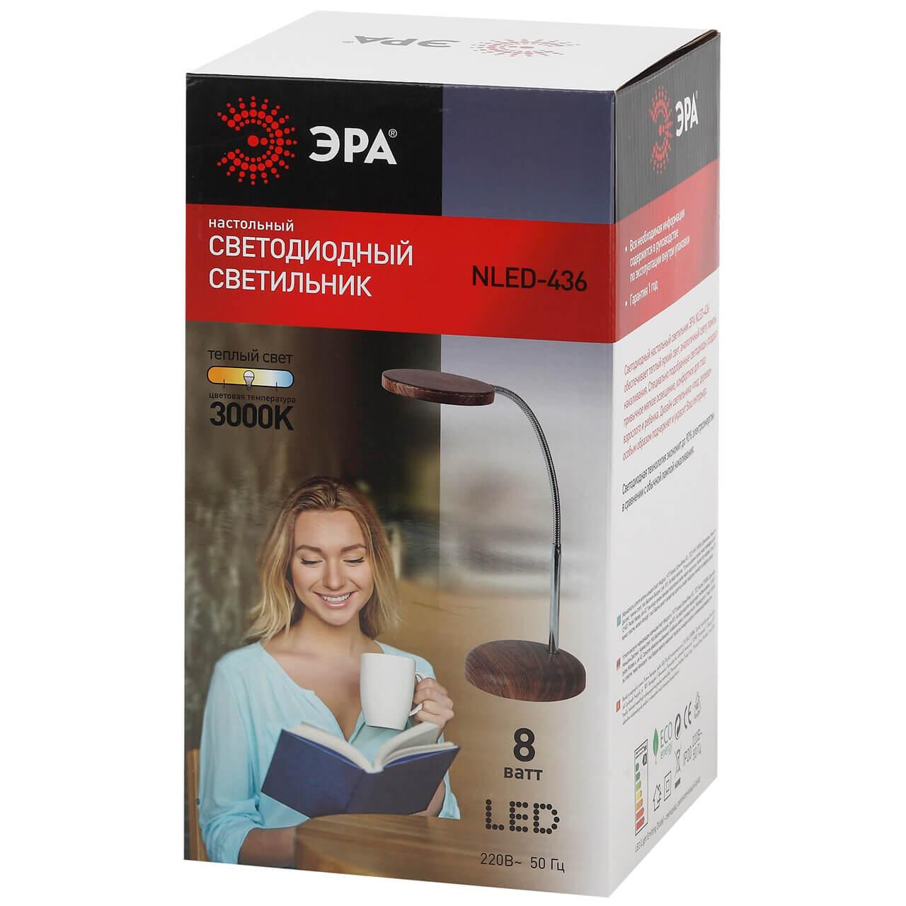 Расширенная гарантия на товар составляет 12 месяцев Настольная лампа ЭРА NLED-436-8W-WOOD Б0031615 в современном стиле используется в интерьере спальни с установкой на стол.
