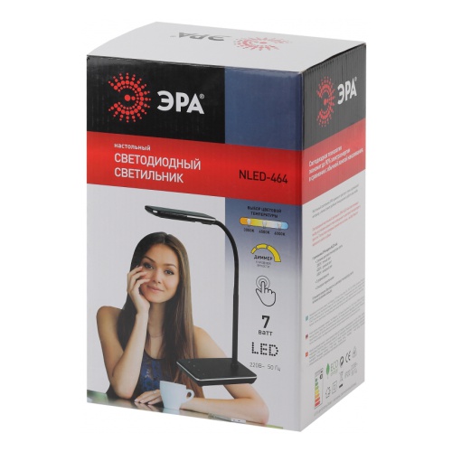 Расширенная гарантия на товар составляет 12 месяцев Настольная лампа ЭРА NLED-464-7W-BK Б0033307 в современном стиле используется в интерьере офиса с установкой на стол.