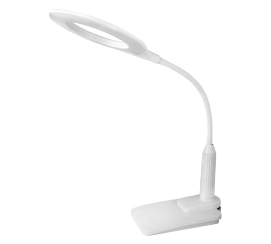 Настольный светильник Camelion KD-814 C01 белый, LED, основание+струбцина, 7Вт, 230В, сенсорное включение, 4 уровня яркости, 450Лм, 4000К 12845 используется для подсветки рабочей зоны на столе.