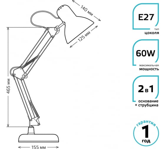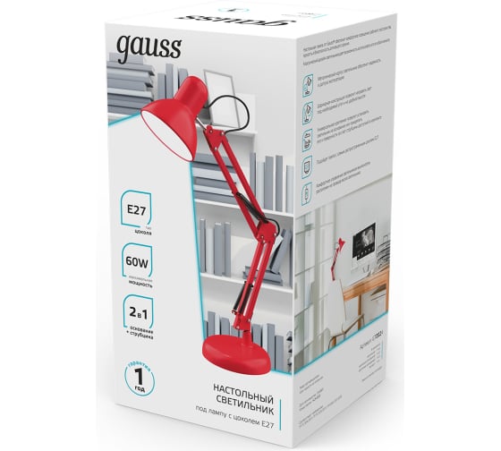 Настольный светильник Gauss модель GTL002 60W 220-240V E27 красный струбцина и основание 1/12 GT0024 с классической формой и цоколем E27 отлично подойдет для освещения рабочей зоны. Рекомендуется использовать светильник со светодиодными лампами Gauss с цоколем E27.