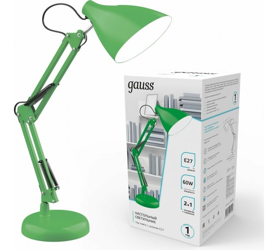 Настольный светильник Gauss модель GTL003 60W 220-240V E27 зеленый струбцина и основание 1/12 GT0033 с классической формой и цоколем E27 отлично подойдет для освещения рабочей зоны. Рекомендуется использовать светильник со светодиодными лампами Gauss с цоколем E27.