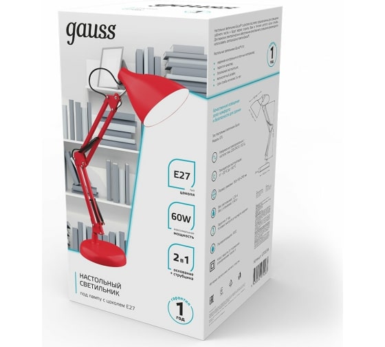 Технические характеристики Gauss GTL003 60W 220-240V E27 красный струбцина и основание GT0034