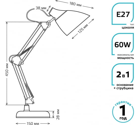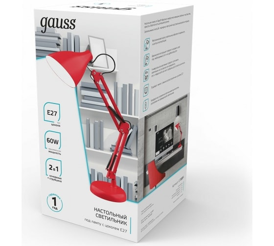 Настольный светильник Gauss модель GTL003 60W 220-240V E27 красный струбцина и основание 1/12 GT0034 с классической формой и цоколем E27 отлично подойдет для освещения рабочей зоны. Рекомендуется использовать светильник со светодиодными лампами Gauss с цоколем E27.