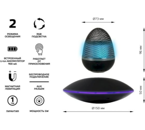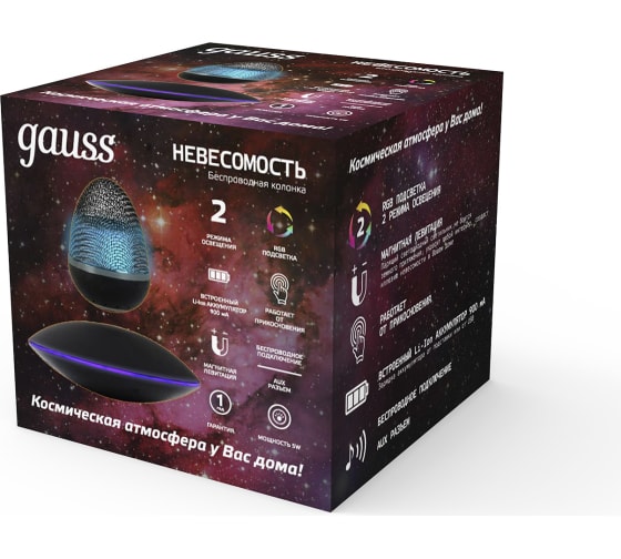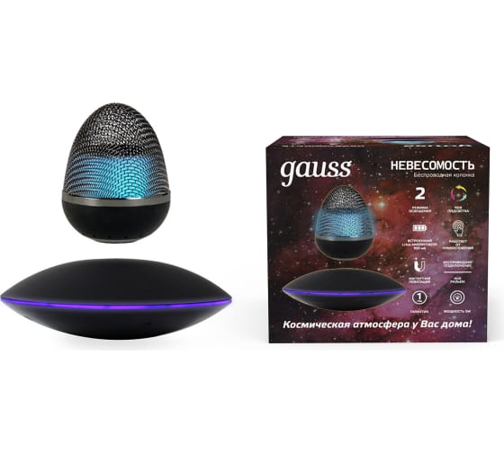 Беспроводная колонка GAUSS 5W RGB 220-240V/5V левитация LED 1/8 LV002 служит для воспроизведения музыки с портативных носителей через функцию Bluetooth. Станет отличным приобретением в качестве подарка.