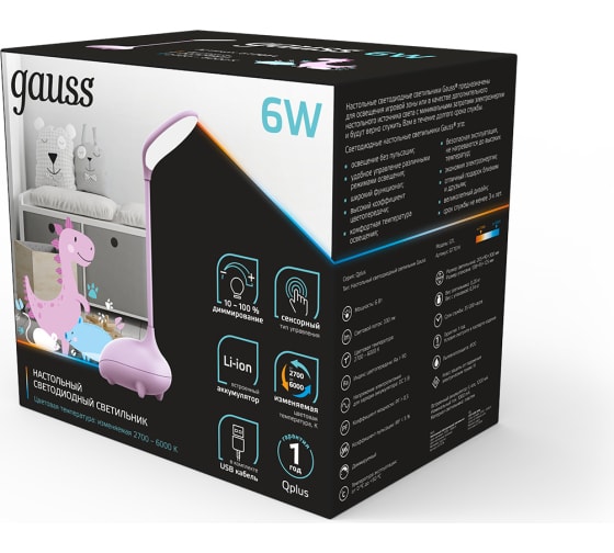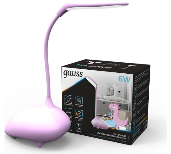 Настольный детский светильник Gauss qplus модель gtl701 6w 330lm 2700-6000k 5v li-ion 1200ma розовый GT7014 выполнен из безопасного материала. Оснащен Li-ion аккумулятором, что позволяет с легкостью переносить и использовать его в удобном для ребенка месте в течение длительного времени. Зарядка аккумулятора осуществляется от шнура с USB разъемом идущего в комплекте.