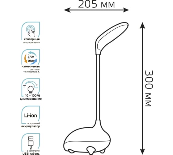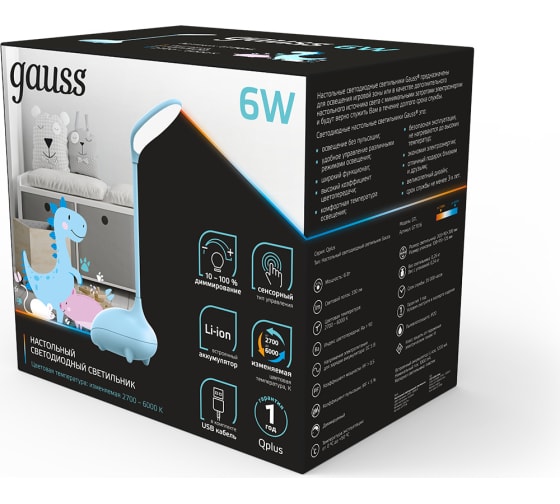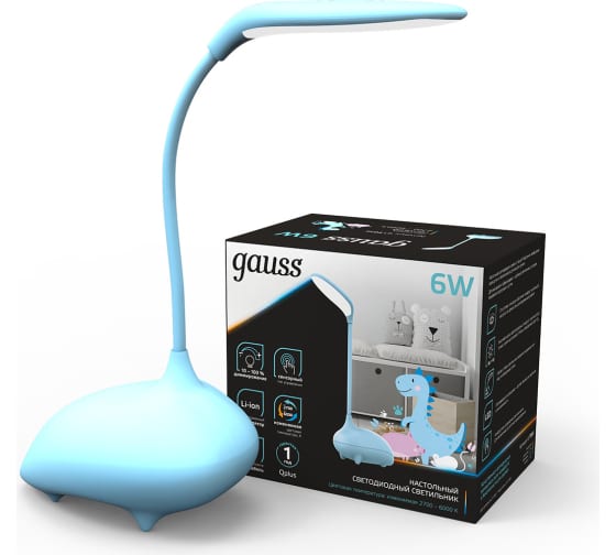 Настольный детский светильник Gauss qplus модель gtl701 6w 330lm 2700-6000k 5v li-ion 1200ma голубой GT7016 выполнен из безопасного материала. Оснащен Li-ion аккумулятором, что позволяет с легкостью переносить и использовать его в удобном для ребенка месте в течение длительного времени. Зарядка аккумулятора осуществляется от шнура с USB разъемом идущего в комплекте.