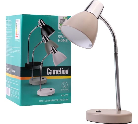 Настольный светильник Camelion предназначен для домашнего освещения. Его можно использовать с любыми типами ламп, в том числе со светодиодными.