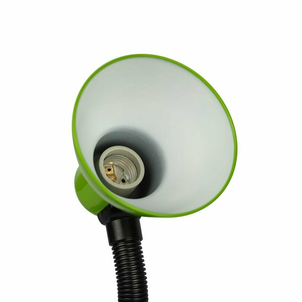 Светильник может использоваться с лампой накаливания, компактной люминесцентной лампой (КЛЛ) или светодиодной (LED) лампой. Устойчивое основание. Металлический плафон. Наклон и поворот плафона в любом направлении.