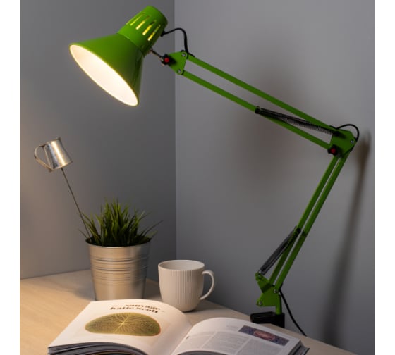 Настольный светильник ЭРА N-121-E27-40W-GR классического дизайна может использоваться с разными источниками света - лампой накаливания, компактной люминесцентной лампой (КЛЛ) или светодиодной (LED) лампой. Выключатель на проводе. Крепится на струбцину. Высота плафона регулируется двухсекционной сгибающейся стойкой, направление света - поворотом и наклоном плафона в любом направлении.
