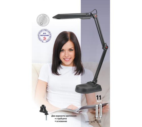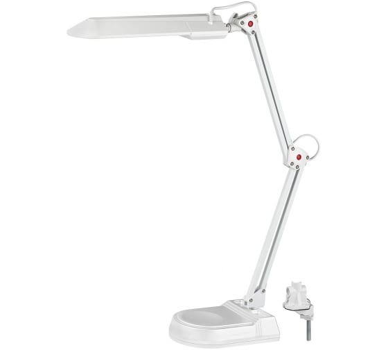 Настольный светильник ЭРА NL-202-G23-11W-W, белый C0041460 предназначен для использования с энергосберегающей лампой, лампа входит к комплект. Два варианта крепления в комплекте: устойчивое основание и струбцина. Высота плафона регулируется двухсекционной сгибающейся стойкой. Отлично экономит рабочее пространство. Варианты с комбинированным креплением дают возможность выбрать, как будет удобнее использовать светильник - с основанием его можно разместить в любом месте на поверхности стола, со струбциной компактно и надежно закрепить на край.