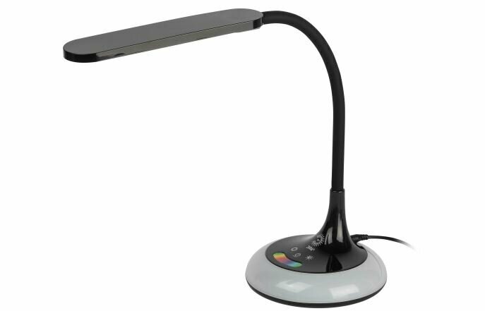 Настольный светильник со светодиодами (LED) в качестве источников света, 10 Вт. Изменяемая цветовая температура: 3000К, 4500К, 6000К. Сенсорное управление. Плавный диммер. Гибкая стойка. LED ночник на основании с независимым сенсорным переключателем, с выбором режимов свечения. Светильник сохраняе...