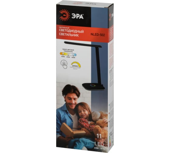 Настольный светильник ЭРА NLED-502-11W-BK со светодиодами (LED) в качестве источников света. Удобная складная модель с сенсорным управлением, возможностью выбора цветовой температуры и плавным диммером для регулировки яркости. В основание светильника встроен светодиодный ночник с независимым выключателем и выбором режима работы.