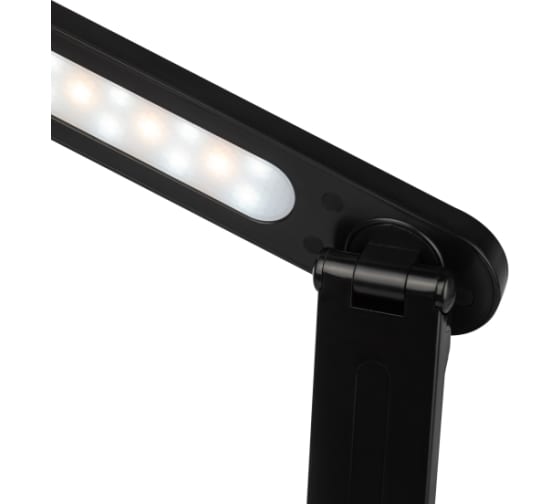 Настольный светильник ЭРА NLED-511-6W-BK со светодиодами (LED) в качестве источников света в дизайне "под кожу". Встроенный литиевый аккумулятор для автономной работы. Подзарядка от USB. USB-кабель в комплекте. Удобная складная конструкция с сенсорным управлением, возможностью выбора цветовой температуры и плавным диммером для регулировки яркости. На обратной стороне основания расположен выключатель для отключения/блокировки сенсора от случайного включения. В светильник встроена функция power bank - есть USB-порт для подзарядки устройств на основании (именно как power bank, автономно, от сети не подзаряжает). Направление света регулируется наклоном стойки и поворотом панели со светодиодами относительно стойки для максимального комфорта.