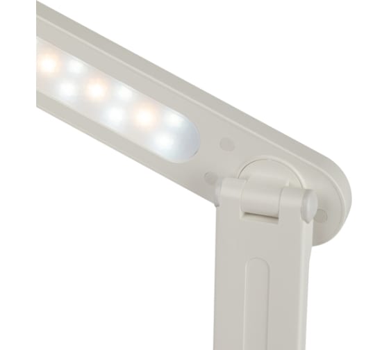 Настольный светильник ЭРА NLED-511-6W-W со светодиодами (LED) в качестве источников света в дизайне "под кожу". Встроенный литиевый аккумулятор для автономной работы. Подзарядка от USB. USB-кабель в комплекте. Удобная складная конструкция с сенсорным управлением, возможностью выбора цветовой температуры и плавным диммером для регулировки яркости. На обратной стороне основания расположен выключатель для отключения/блокировки сенсора от случайного включения. В светильник встроена функция power bank - есть USB-порт для подзарядки устройств на основании (именно как power bank, автономно, от сети не подзаряжает). Направление света регулируется наклоном стойки и поворотом панели со светодиодами относительно стойки для максимального комфорта.
