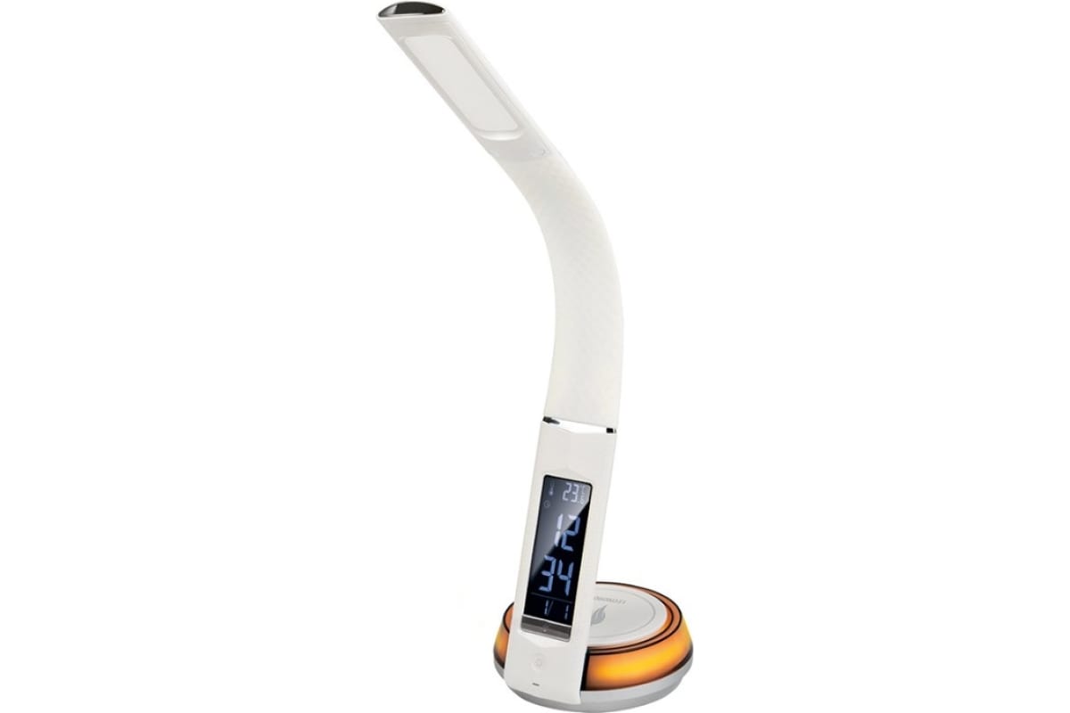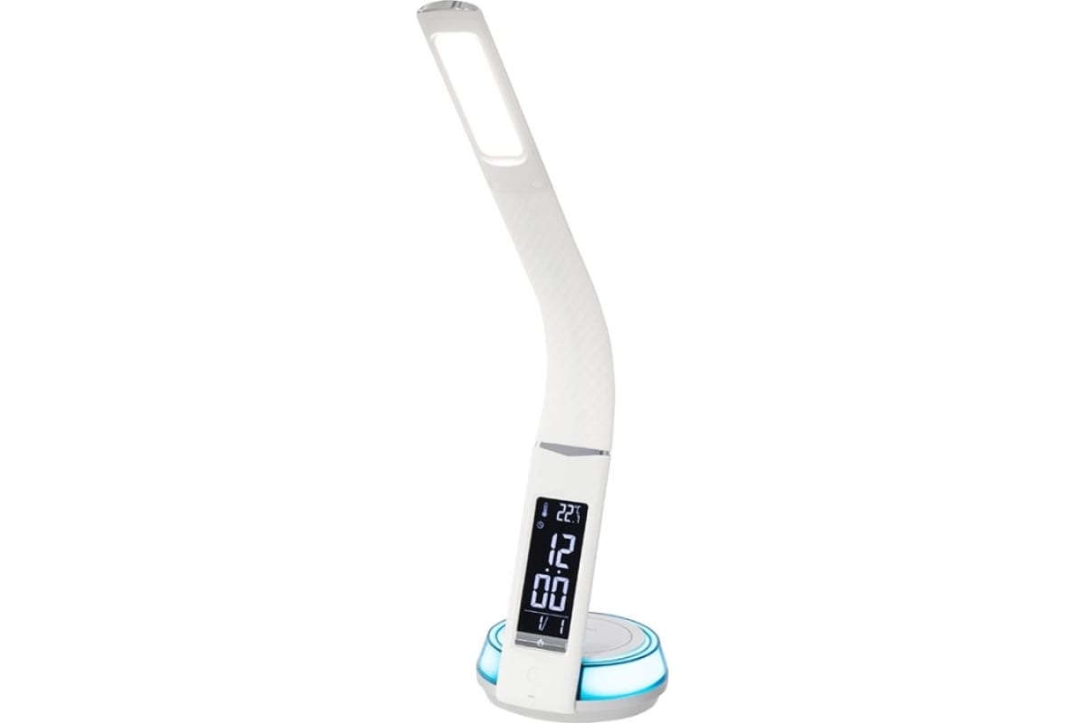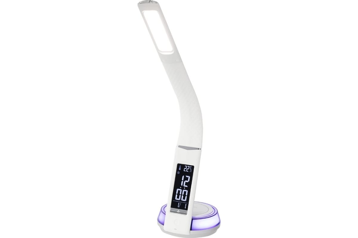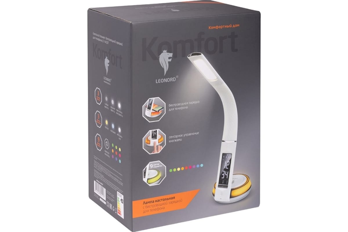Настольная лампа Leonord с беспроводной зарядкой для телефона le-1400t 105977 имеет многофункциональный дисплей с указанием даты/времени/температуры (работает от 1 батарейки CR2032, входит в комплект). Адаптер в комплекте.