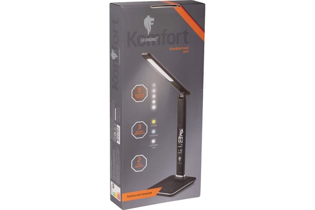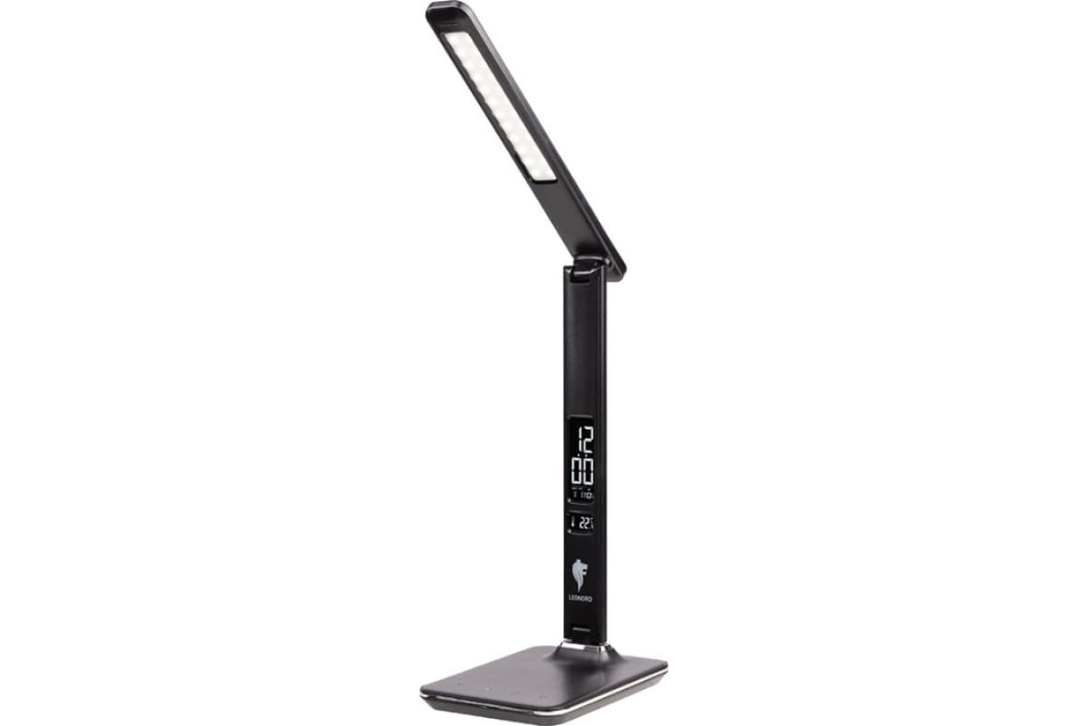Настольная лампа Leonord le-1402 105979 имеет многофункциональный дисплей с указанием времени / даты / дня недели / температуры (работает от батарейки 1*CR2032, входит в комплект).