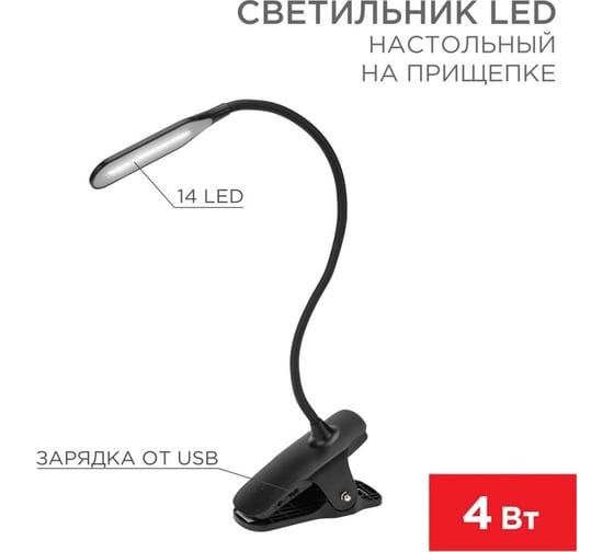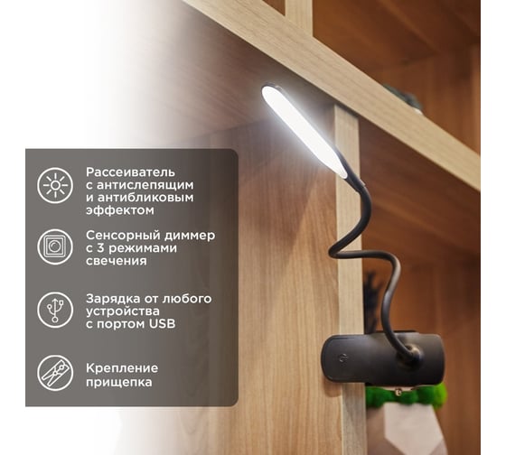 Преимущества REXANT Click 4Вт, LED, 4000К, диммируемый 3 ступени, заряжаемый, на прищепке, черный 609-033