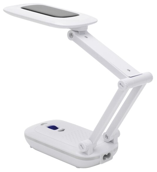 Светильник-ночник настольный REXANT со световым потоком 250 Лм используется для освещения рабочего места дома или в офисе, прикроватной зоны в детской комнате или гостиной. Корпус дополнен панелью, которая позволяет заряжать светильник от прямых солнечных лучей. Функция ночника с синим свечением реализуется путем питания от стандартной сети 220 В. В режиме светильника излучает нейтральное естественное свечение 4000 К. Диммер позволяет менять яркость излучаемого света. Лампа-трансформер мощностью 5 Вт обладает матовым рассеивателем с антиослепляющим эффектом для излучения равномерного мягкого света без пульсаций. Благодаря встроенному аккумулятору может работать до 3-х часов при отсутствии питания. Облегченная портативная конструкция без усилий складывается и транспортируется в любое место, нуждающееся в дополнительной подсветке. Изделие в складном варианте помещается в рюкзак и даже женскую сумочку. Продуман наклон корпуса для изменения направления света.