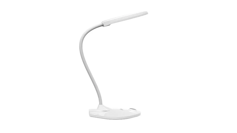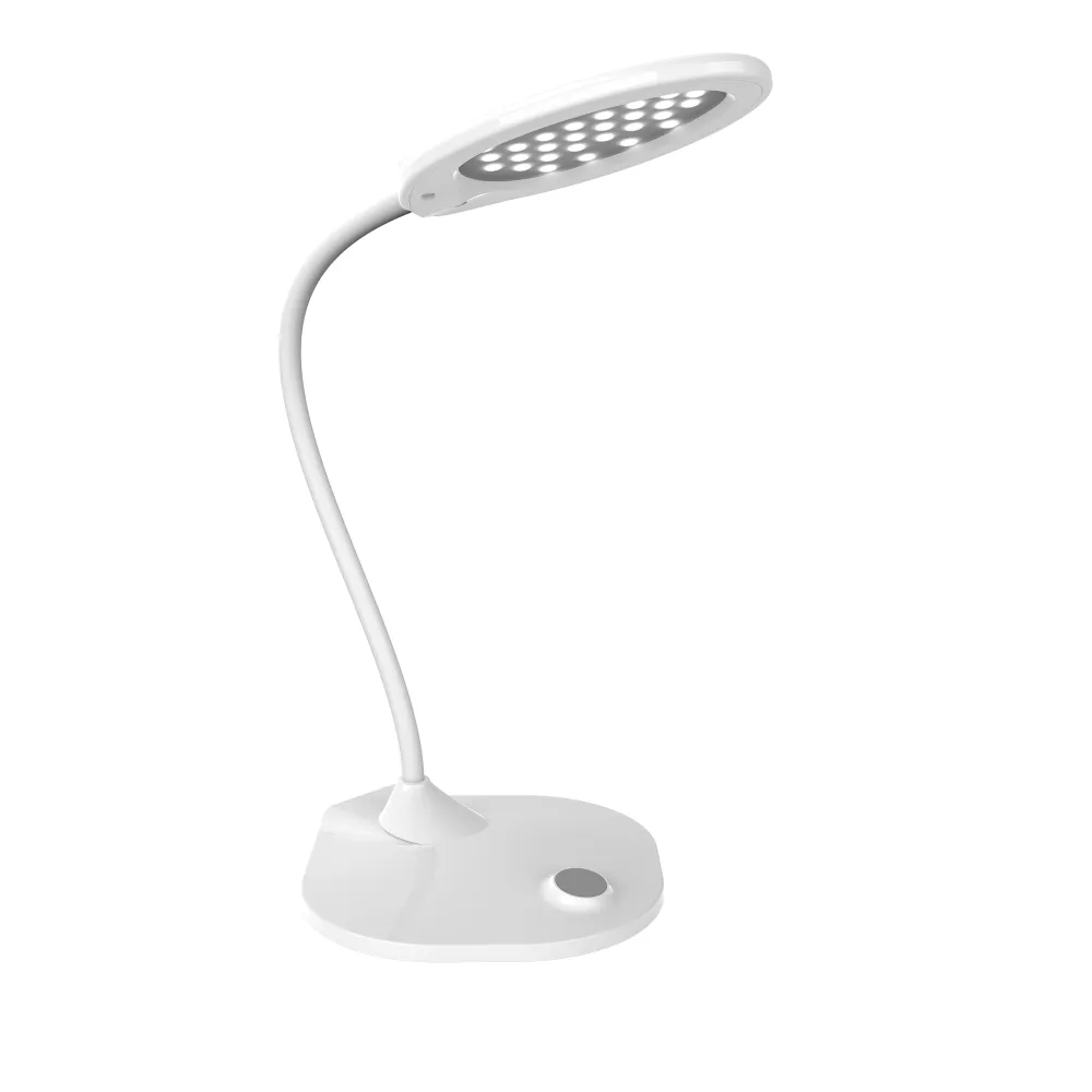 Лампа освещения настольная, светодиодная с регулировкой яркости и удобной сенсорной кнопкой, на «гибкой ноге» с изменяемым углом наклона и поворота светильника. Имеет выход USB зарядки 2А (для зарядки). Особенно удобно для учёбы или удаленной работы.