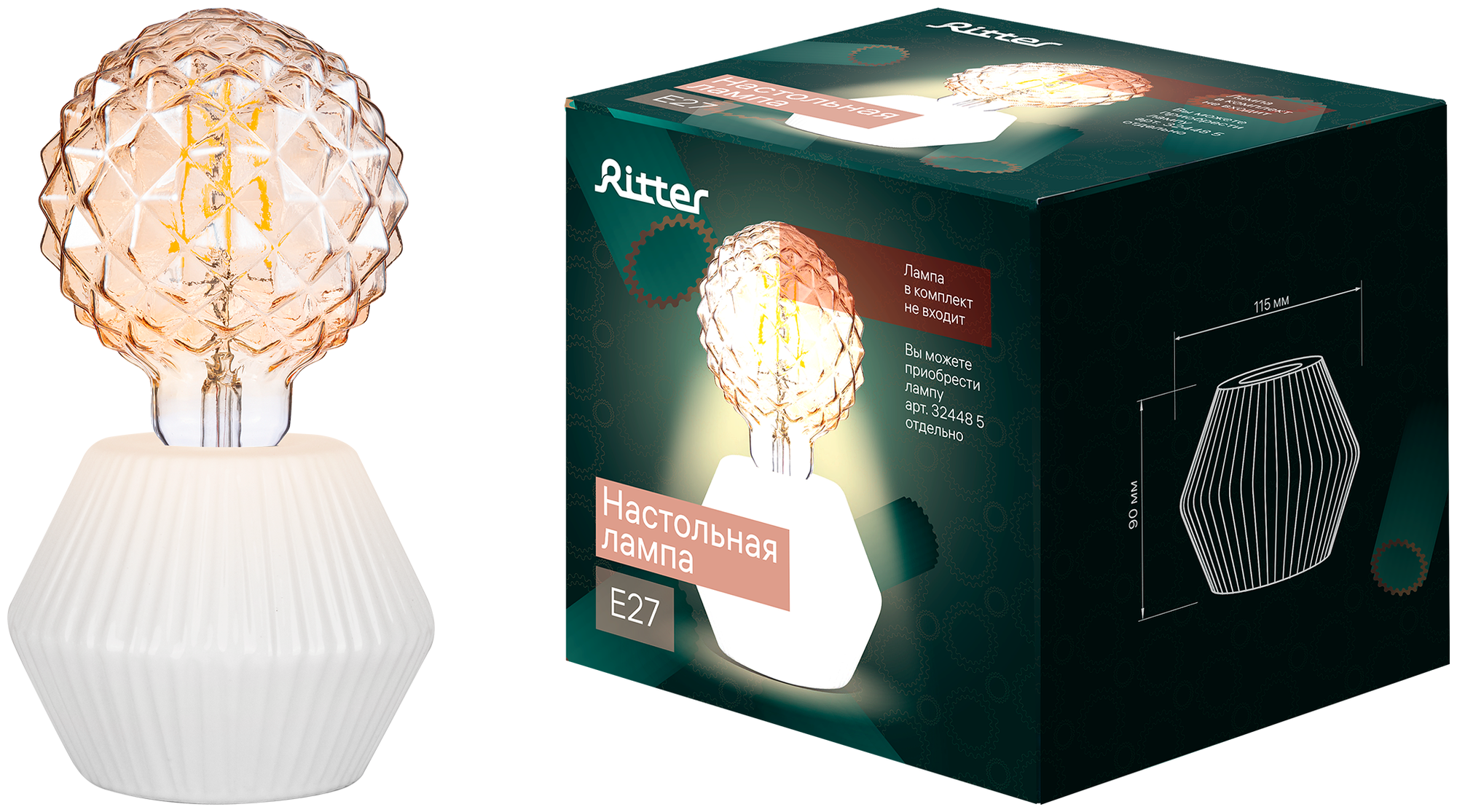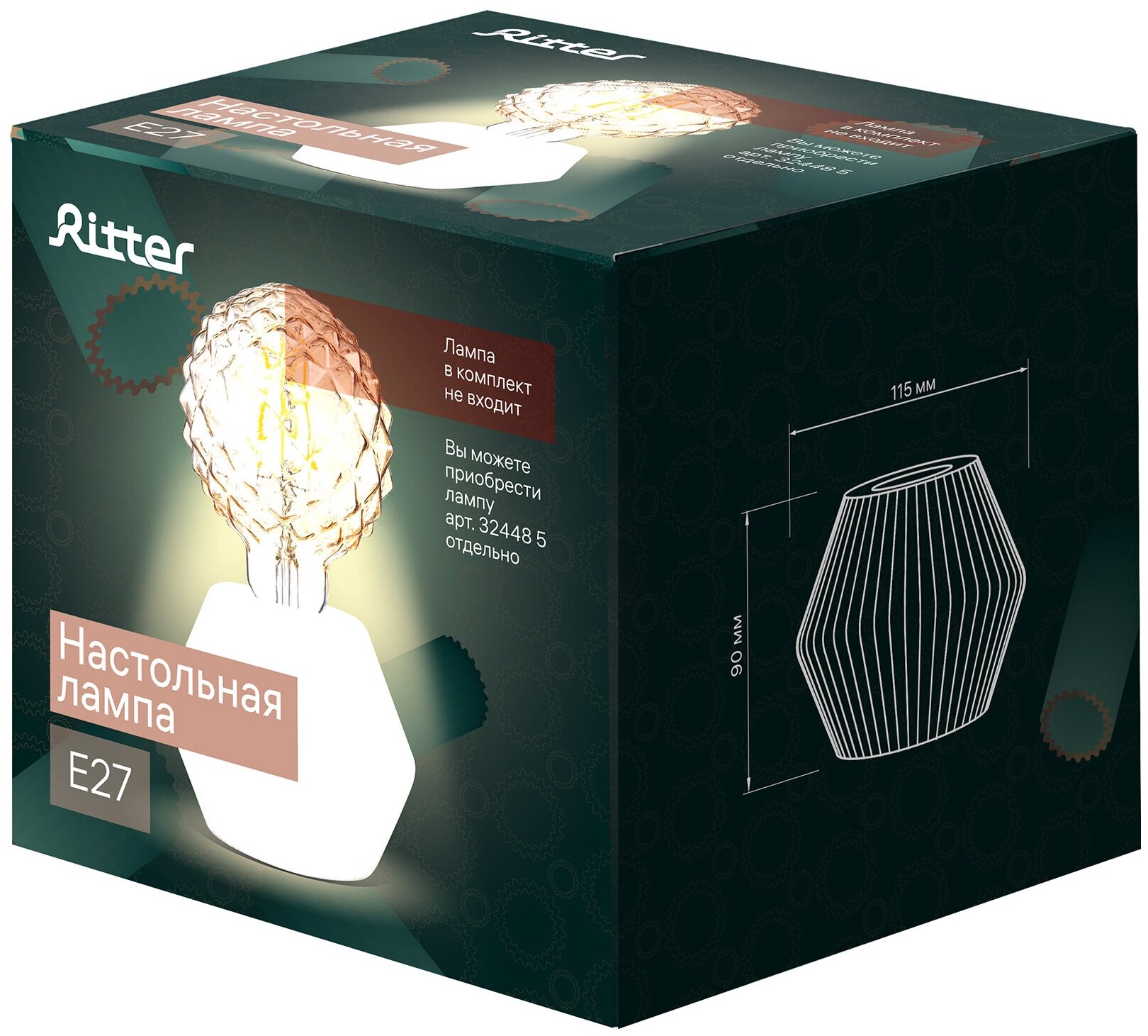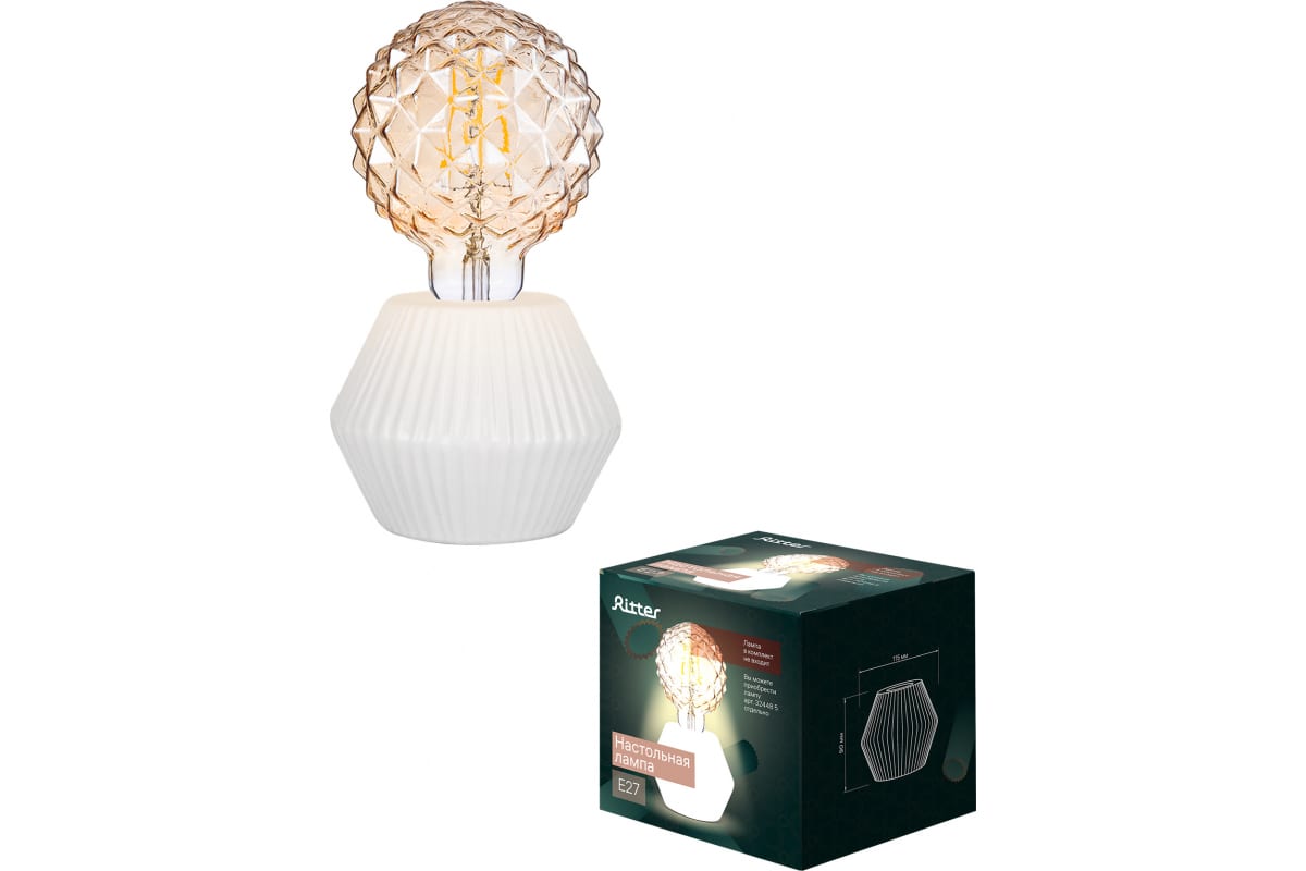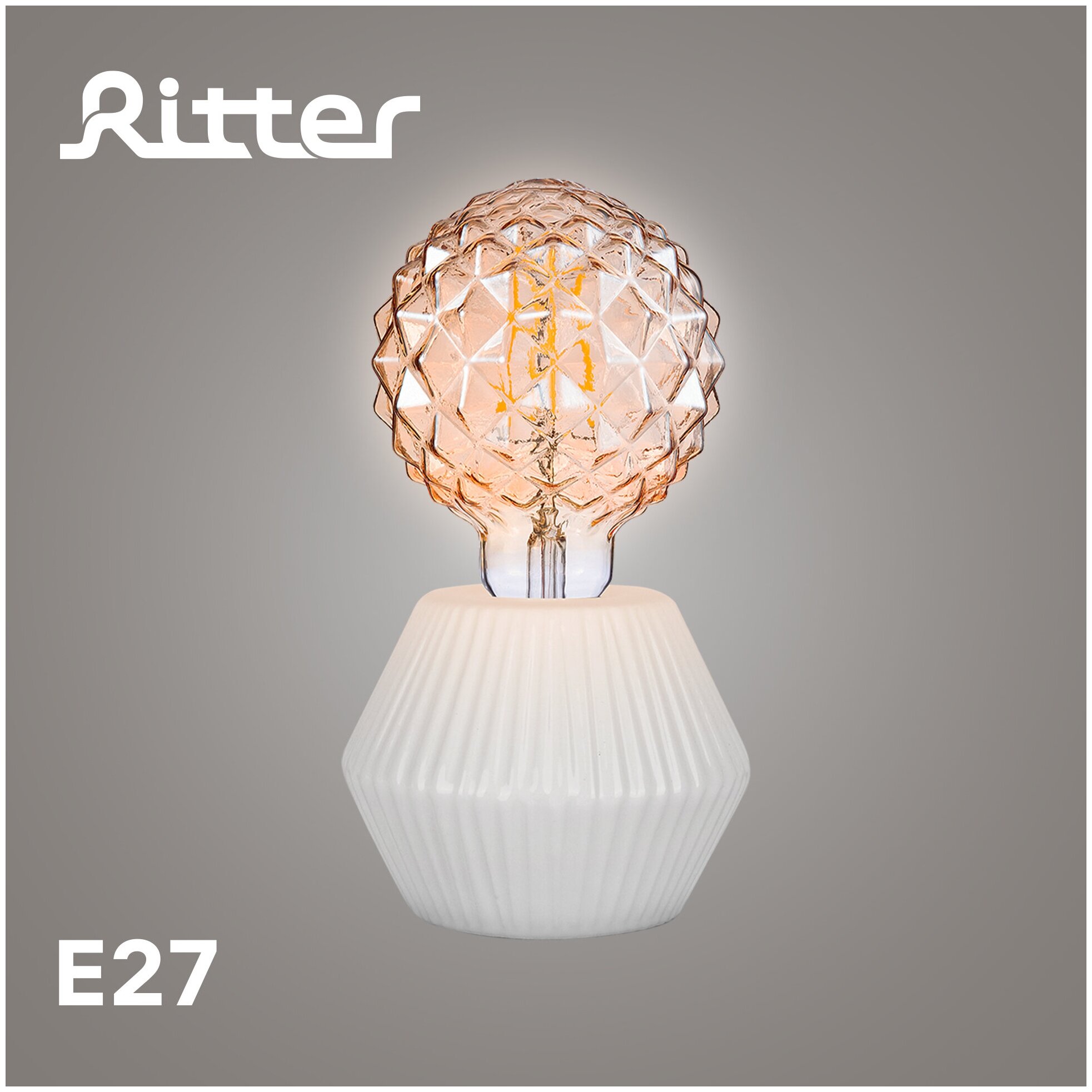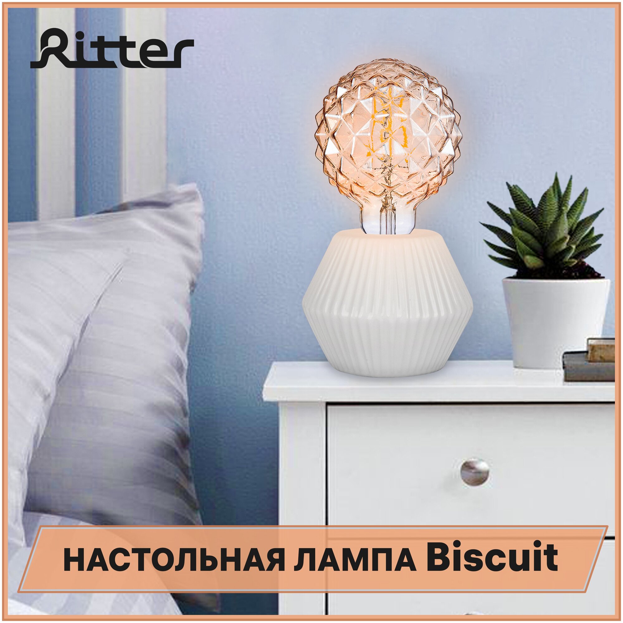 Настольный светильник Ritter BISCUIT, E27, max. 40Вт, 1,6 м 52708 4 подходит для общественных или частных интерьеров, хорошо смотрится на журнальном или письменном столе, полке, прикроватной тумбочке. Основание выполнено из фарфора, а в стандартный цоколь Е27 рекомендуется вставлять интересные декоративные лампы серии Filament. Выключатель расположен на шнуре питания, длина которого 1,6 м.
