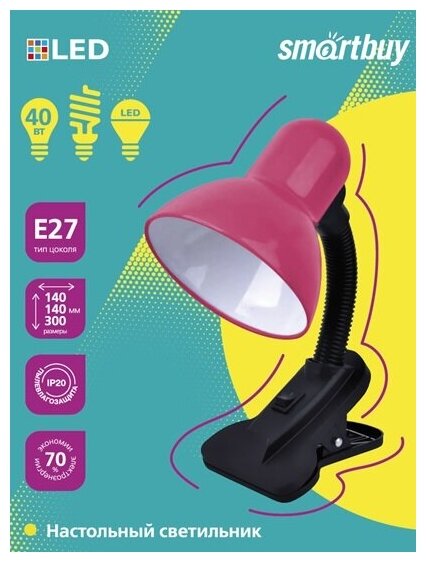 Технические характеристики Smartbuy Е27 с прищепкой Pink SBL-DeskL01-Pink