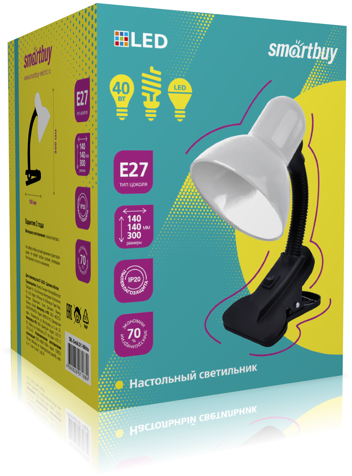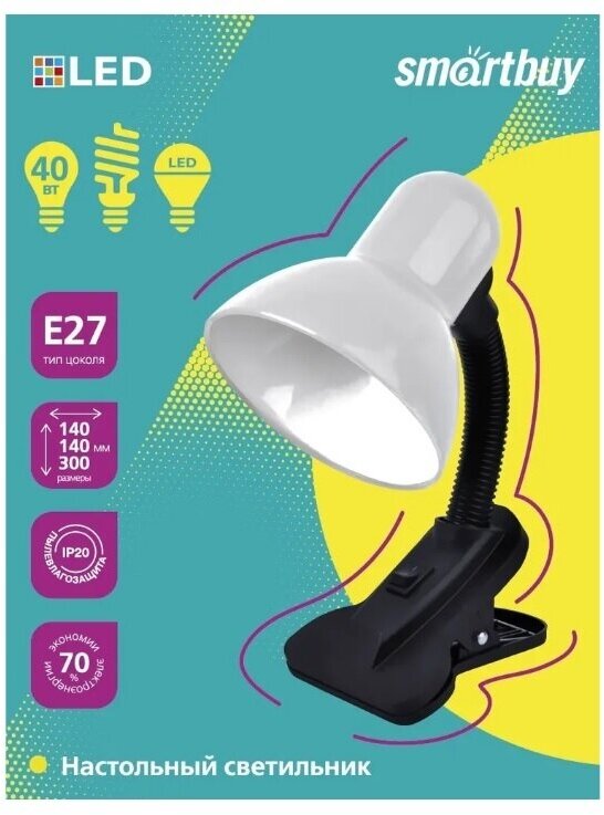 Технические характеристики Smartbuy Е27 с прищепкой White SBL-DeskL01-White