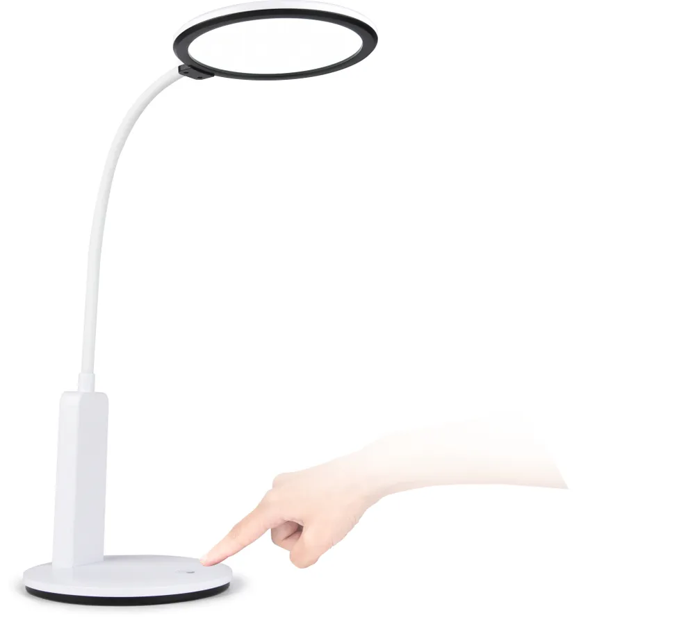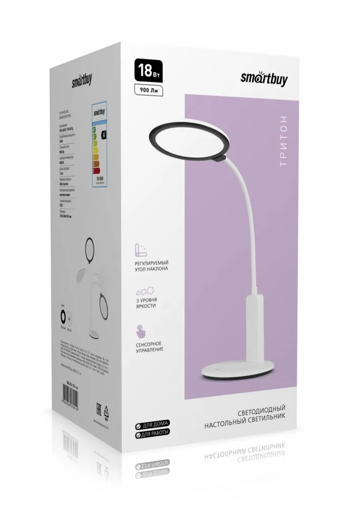 Светодиодный настольный светильник Smartbuy Тритон, 18 Вт, белый SBL-DL-18-r-w имеет три уровня яркости. Сенсорное управление. Длина кабеля 1,5 м.