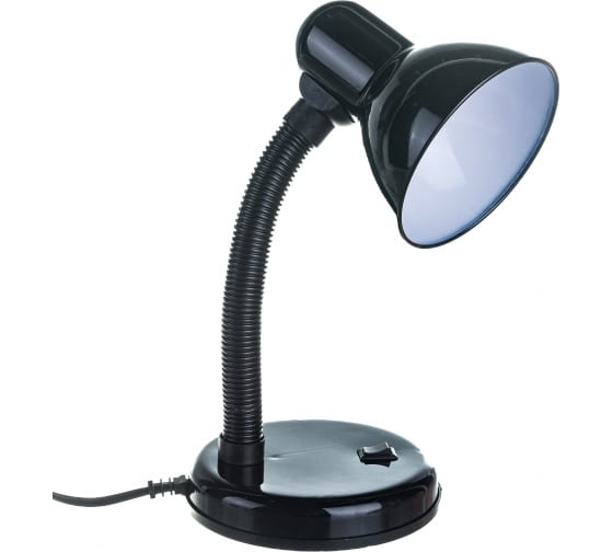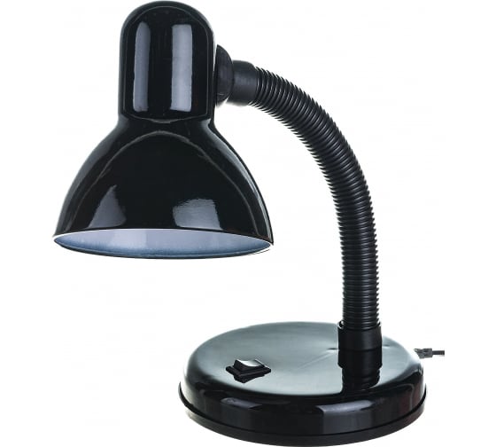 Настольный светильник, черный 230V 60W Ultraflash UF-301P С02 12368 представляет собой сочетание металлического основания с кнопкой, плафона с патроном Е27, а также гибкой стойки. Питание осуществляется от сети 220 В при помощи шнура с вилкой. Изделие может использоваться совместно с лампами накаливания, светодиодными и энергосберегающими лампами (КЛЛ). Длина шнура - 1м.