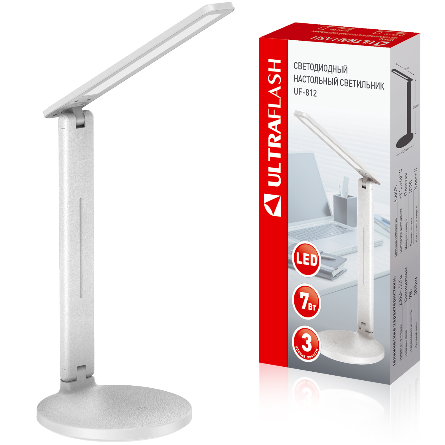 Светильник светодиодный настольный Ultraflash UF-812 предназначен для освещения индивидуального рабочего пространства. Корпус выполнен из пластика с имитацией структуры натуральной кожи.