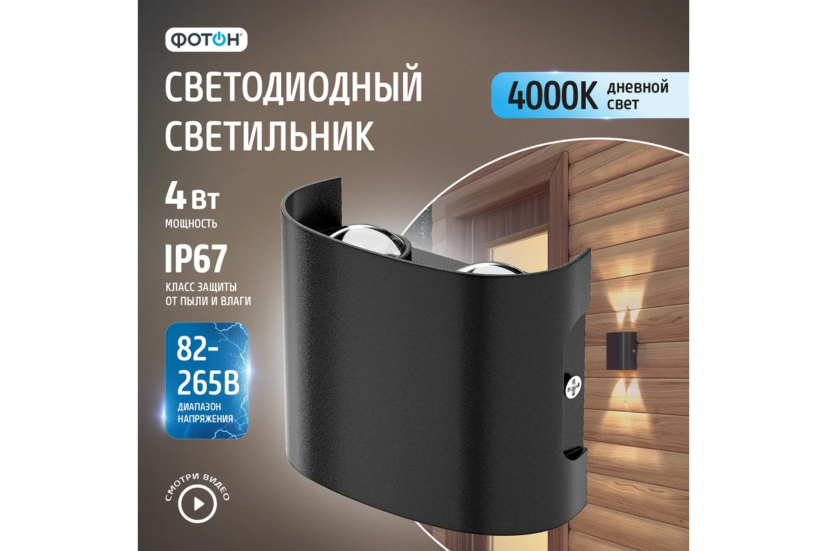 Технические характеристики ФОТОН SLO- 4W4000K-B черный 24738