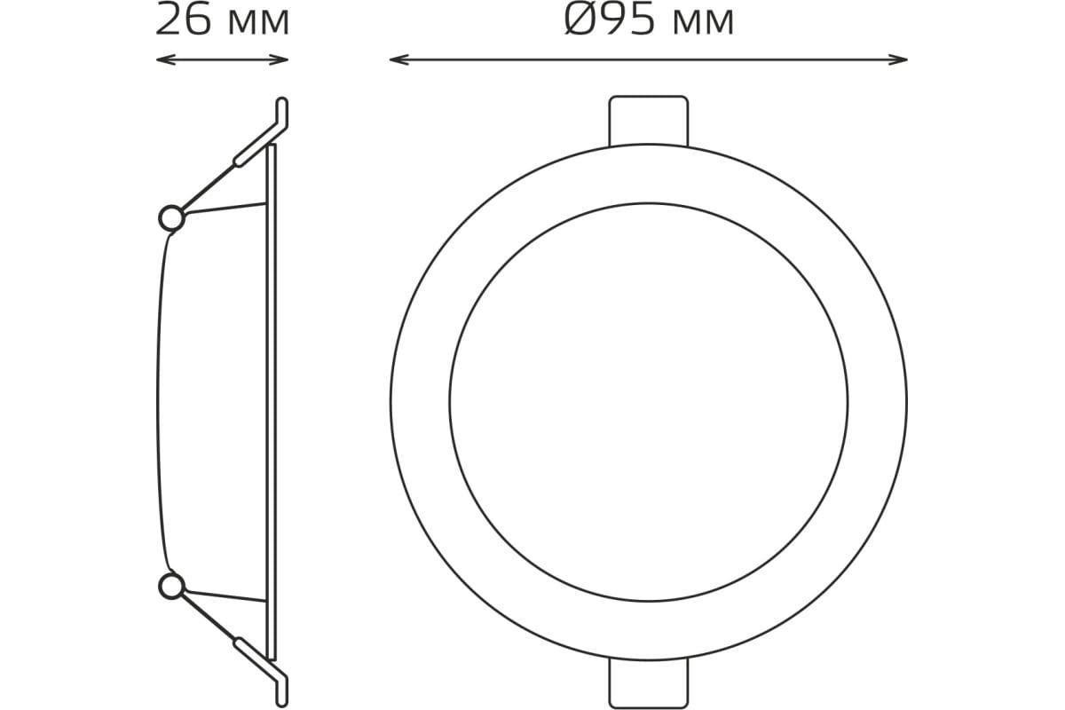 Технические характеристики Gauss ElementaryDownlight круг5W 430lm4000K IP20 95×38монтаж белыйL 9100420205T