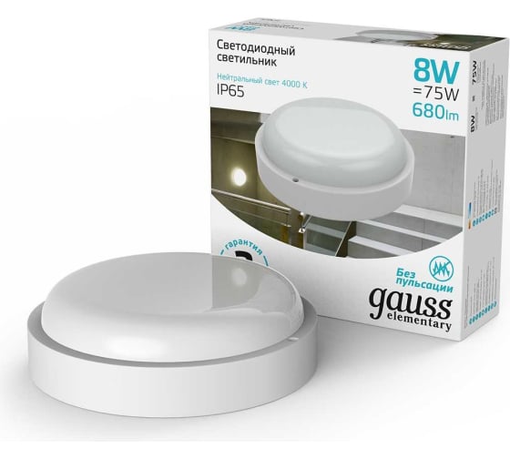 Преимущества Gauss круглый IP65 8W 4000K 126411208