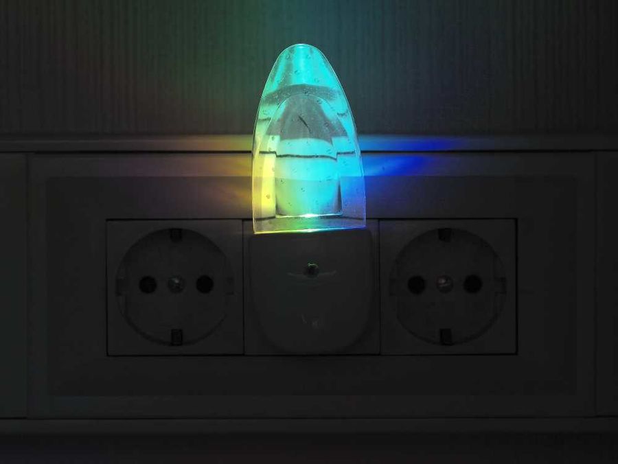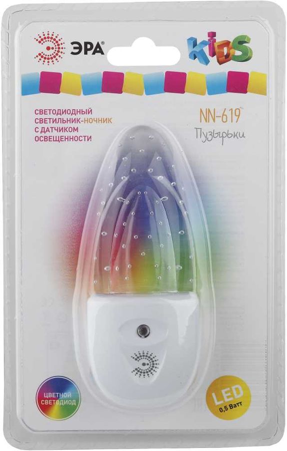Ночник со светодиодом (LED) в качестве источника света. Включается автоматически, когда становится темно. Цветной RGB светодиод - прозрачная часть ночника, похожая на кристалл, подсвечивается разноцветным переливающимся светом при включении.