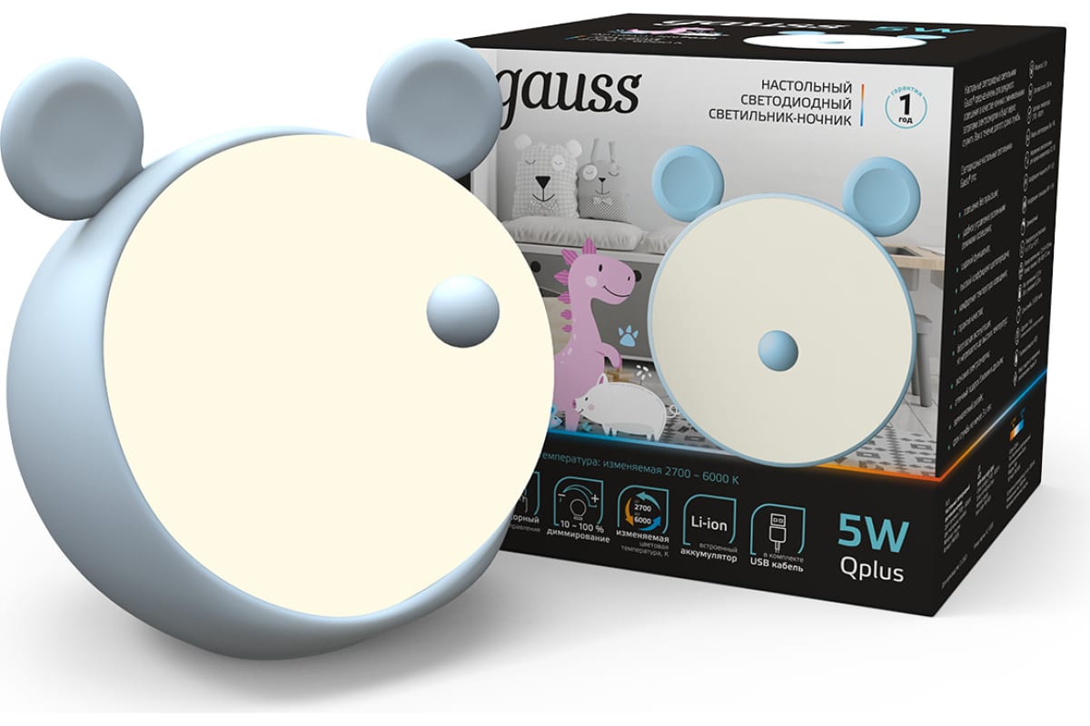 Настольный светильник ночник Gauss qplus модель gtl702 5w 200lm 2700-6000k 5v li-ion 1200ma голубой NN7026 выполнен из мягкого и безопасного материала. Оснащен Li-ion аккумулятором, что позволяет с легкостью переносить и использовать его в удобном для ребенка месте в течение длительного времени. Зарядка аккумулятора осуществляется от шнура с USB разъемом идущего в комплекте.