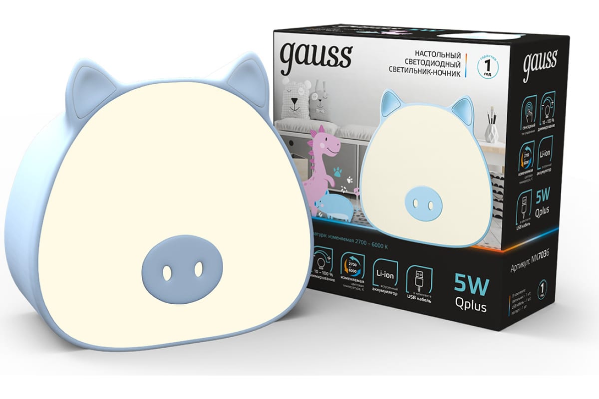 Настольный светильник ночник Gauss qplus модель gtl703 5w 200lm 2700-6000k 5v li-ion 1200ma голубой NN7036 выполнен из мягкого и безопасного материала. Оснащен Li-ion аккумулятором, что позволяет с легкостью переносить и использовать его в удобном для ребенка месте в течение длительного времени. Зарядка аккумулятора осуществляется от шнура с USB разъемом идущего в комплекте.